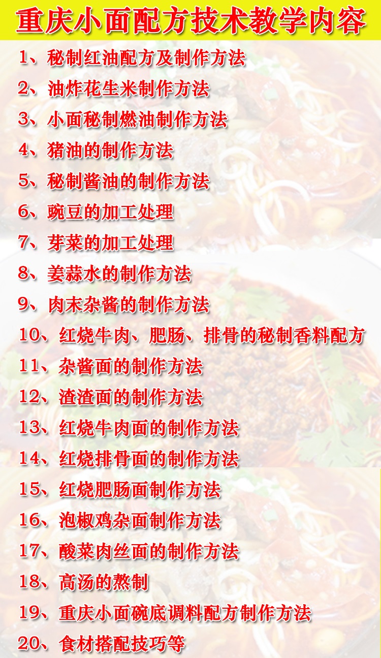 正宗重庆小面技术配方教程豌杂面肥肠面牛肉面排骨面开店技术百度网盘夸克网盘